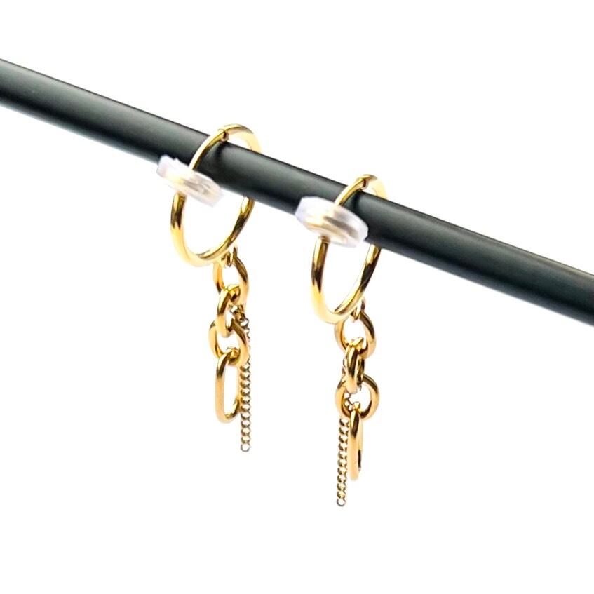 つけっぱなしOK サージカルステンレス ピアス チェーンピアス pierced earrings ゴールド
