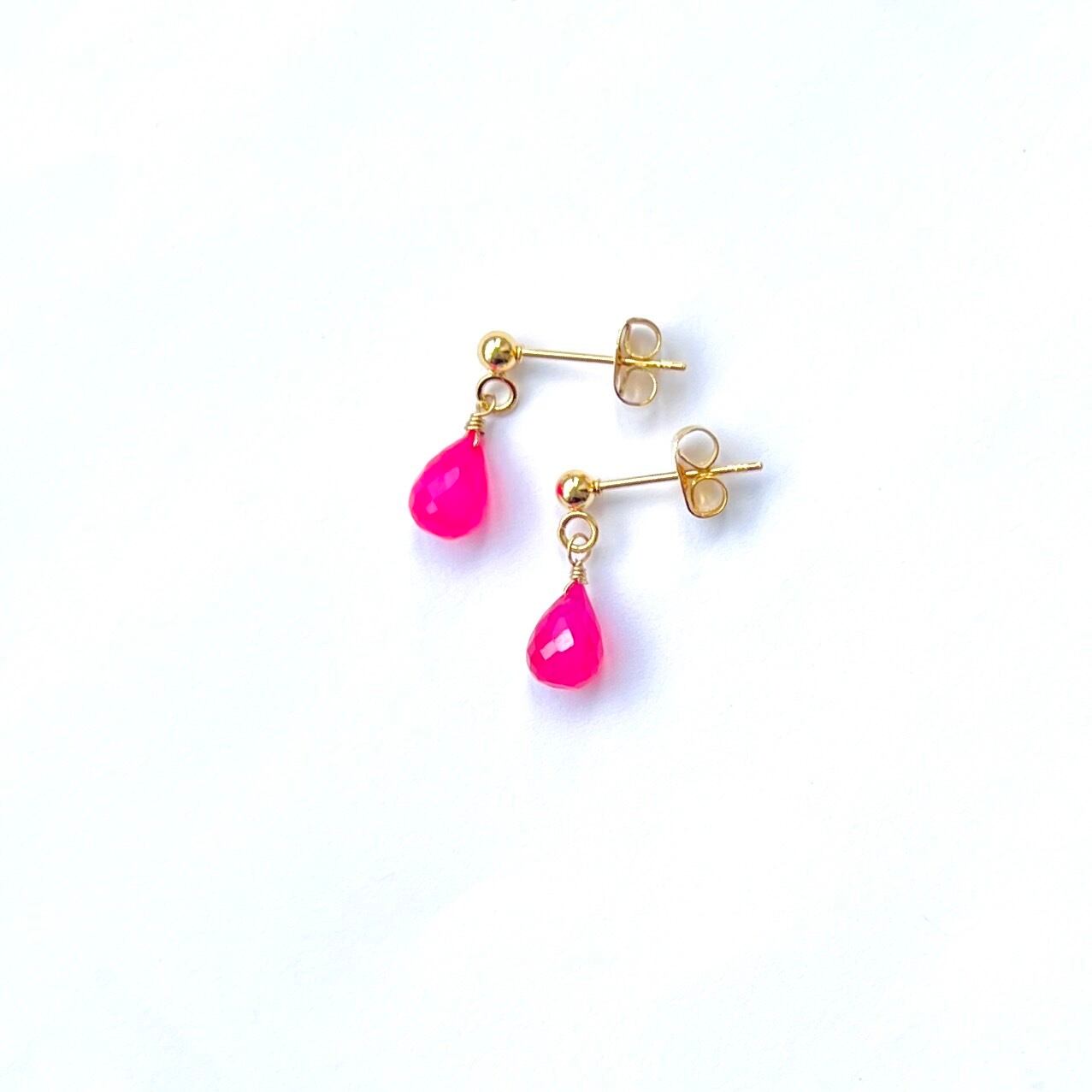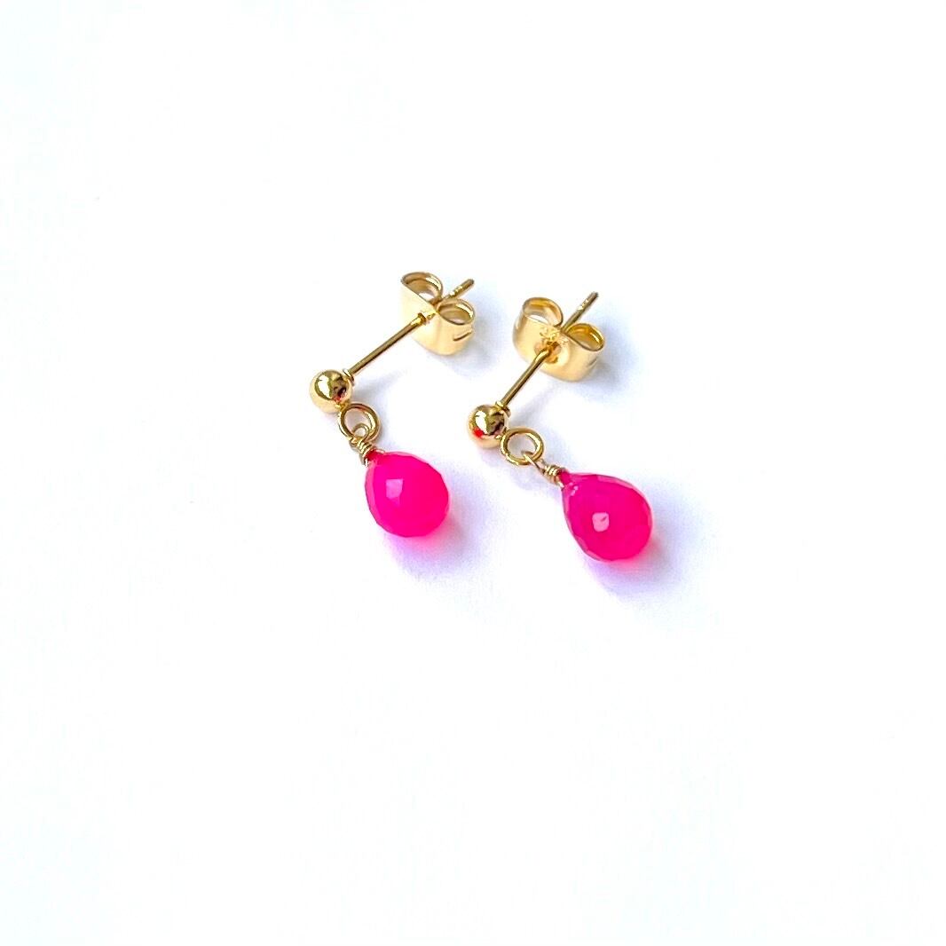 ミニサイズ ピアス 天然石 ピンクカルセドニー サージカルステンレス pierced earrings