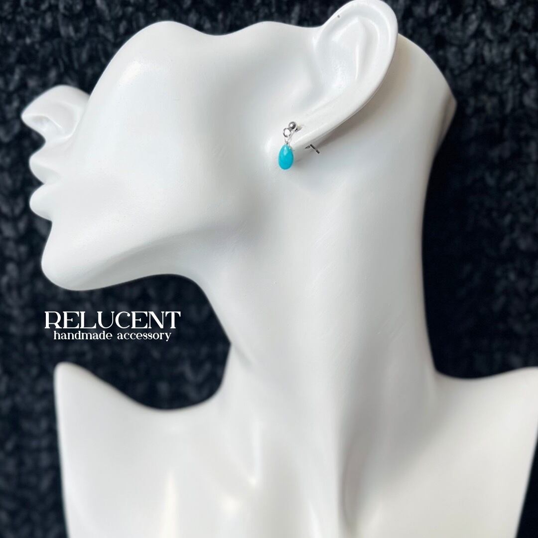 ミニサイズ ピアス 天然石 キングマン ターコイズ サージカルステンレス シルバー pierced earrings