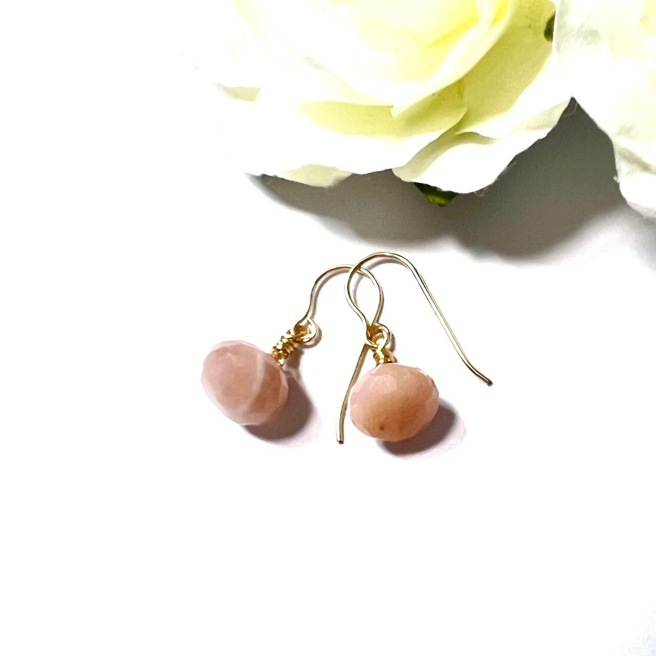 ミニサイズ 天然石ピアス ピンクオパール 小ぶり 14kgf pierced earrings