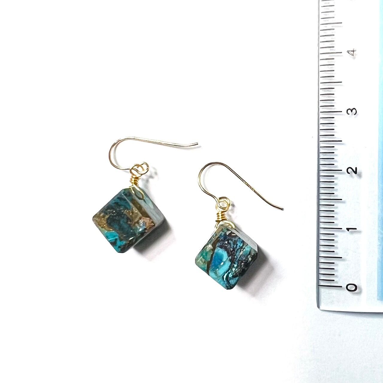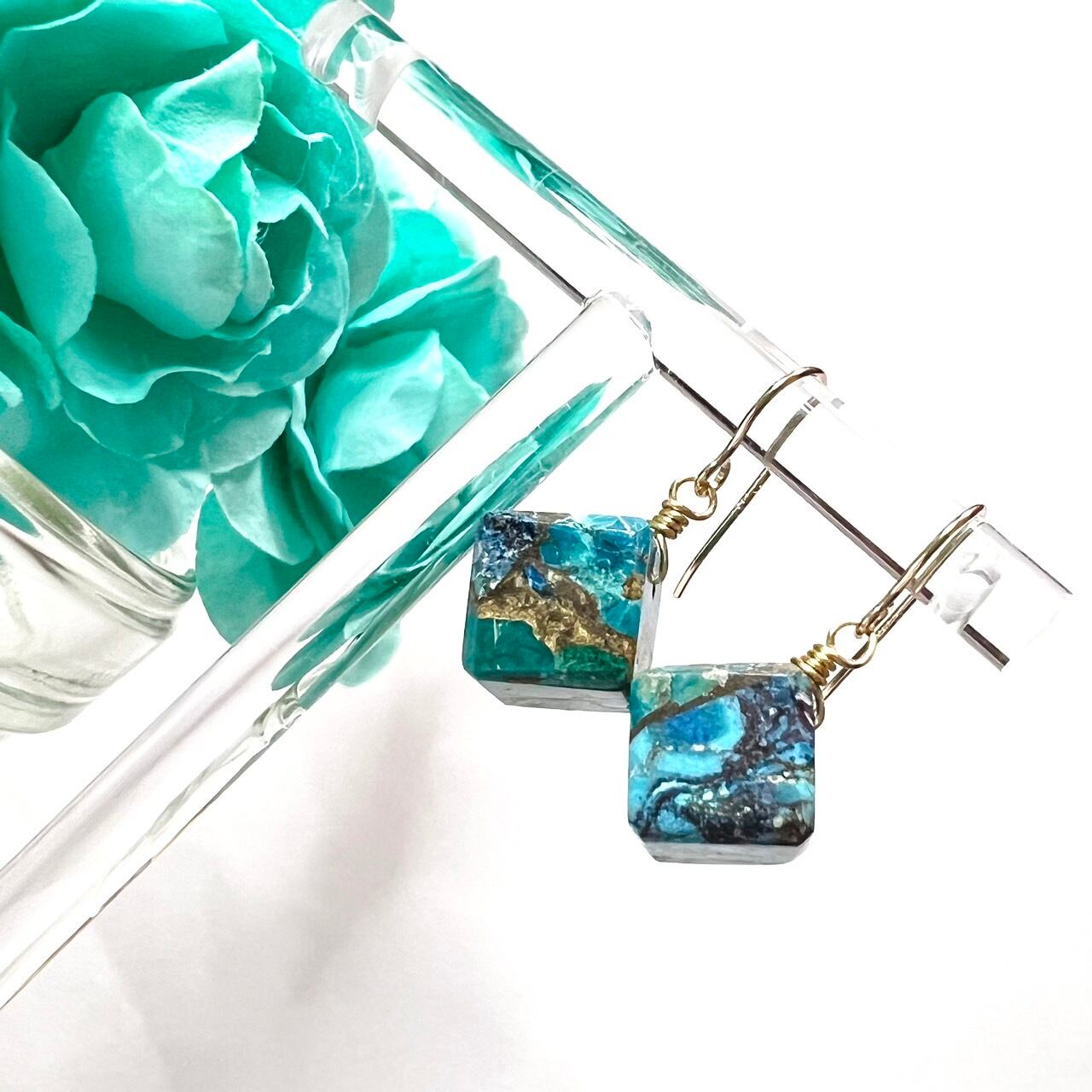 天然石ピアス クリソコラコッパー 14kgf pierced earrings