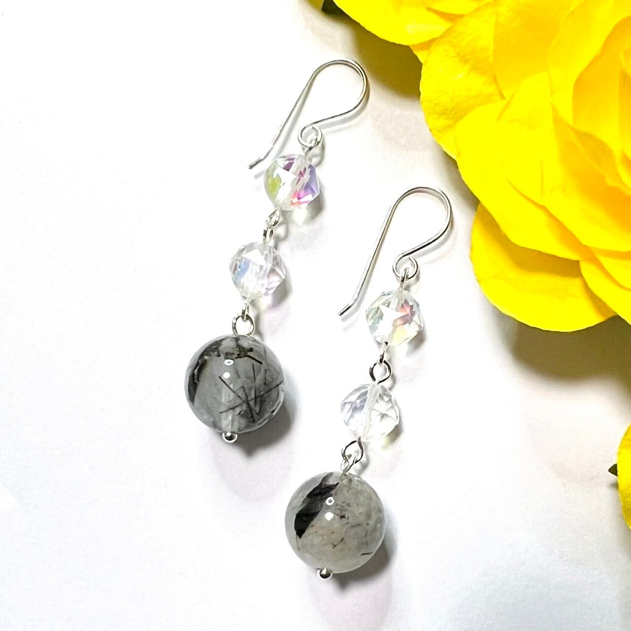 天然石ピアス トルマリンクォーツ×ルナフラッシュ silver925 pierced earrings
