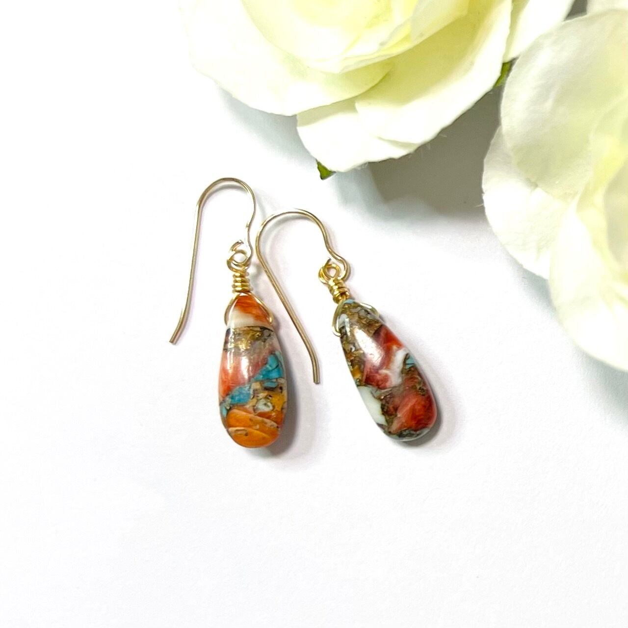 天然石ピアス オイスターコッパーターコイズ フック 14kgf pierced earrings