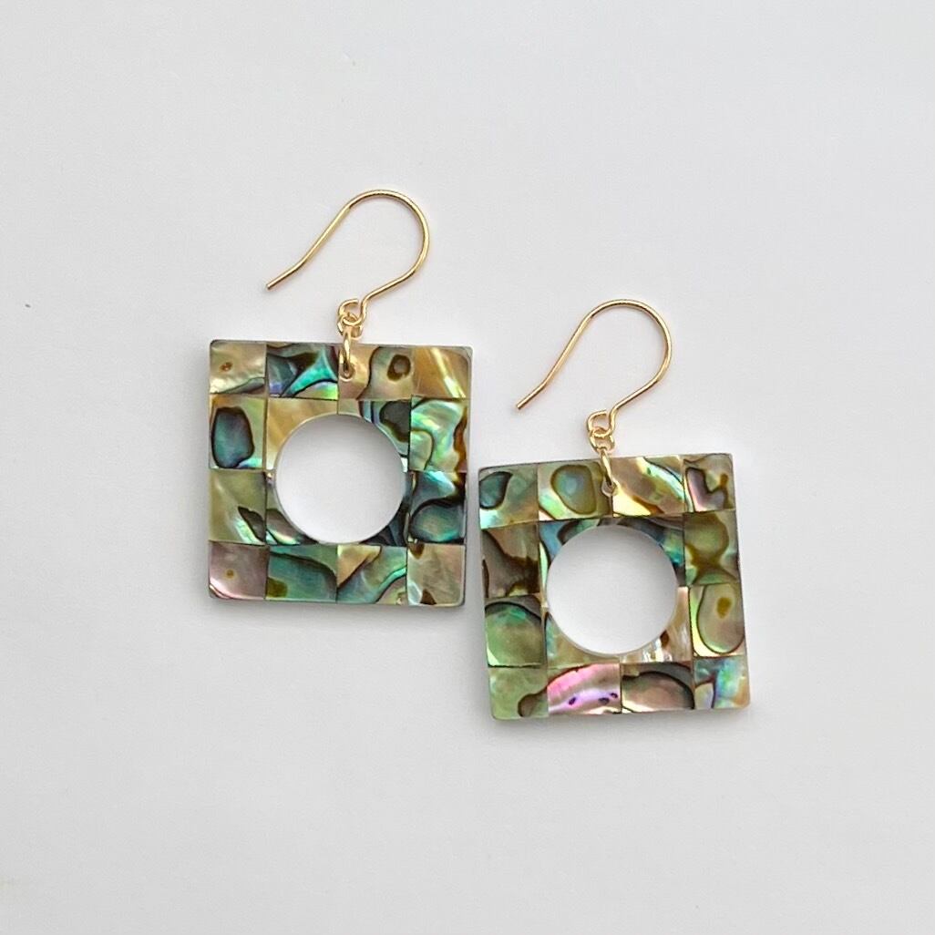 天然石ピアス アバロンシェル スクエア 14kgf pierced earrings