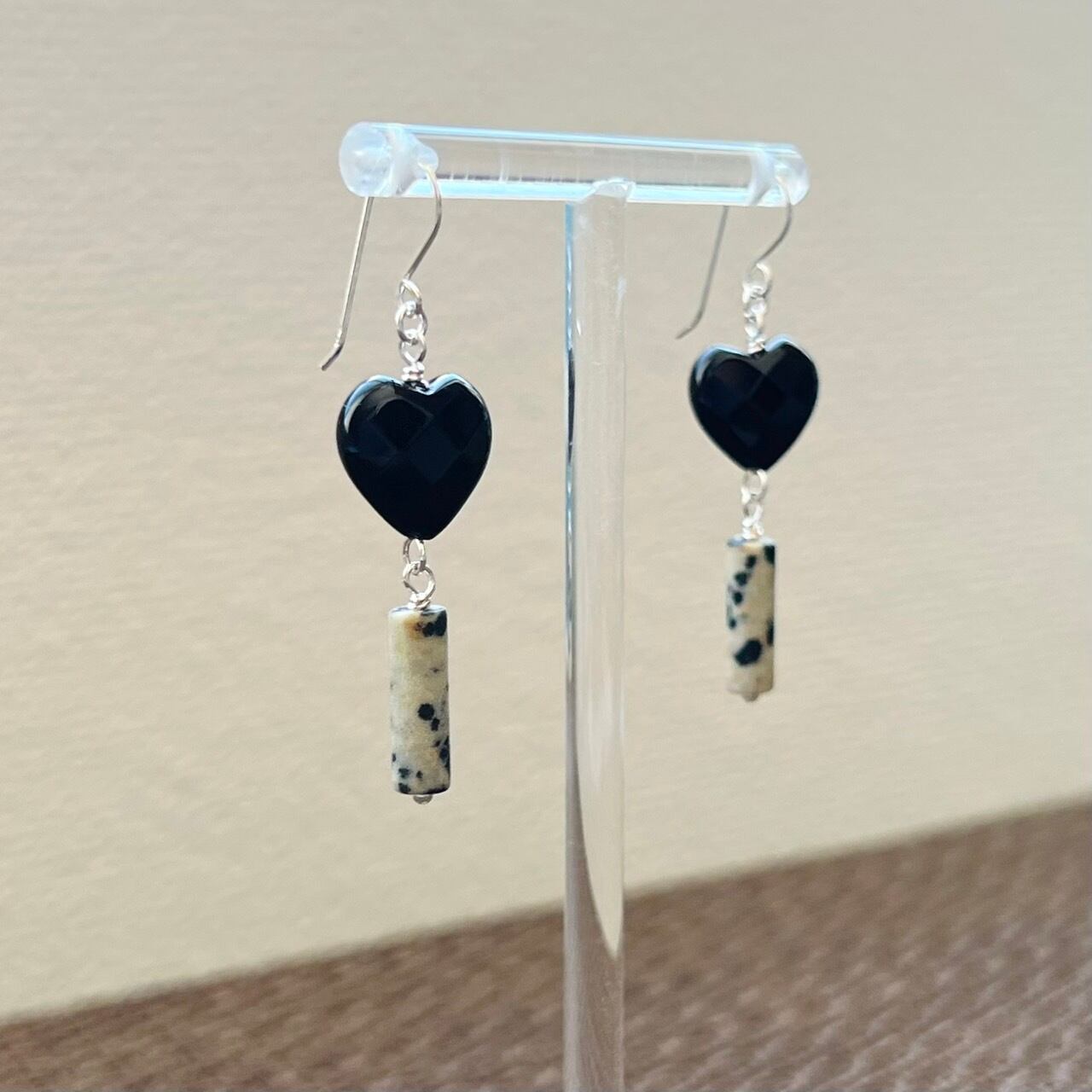 天然石ピアス オニキス×ダルメシアンジャスパー silver925 pierced earrings