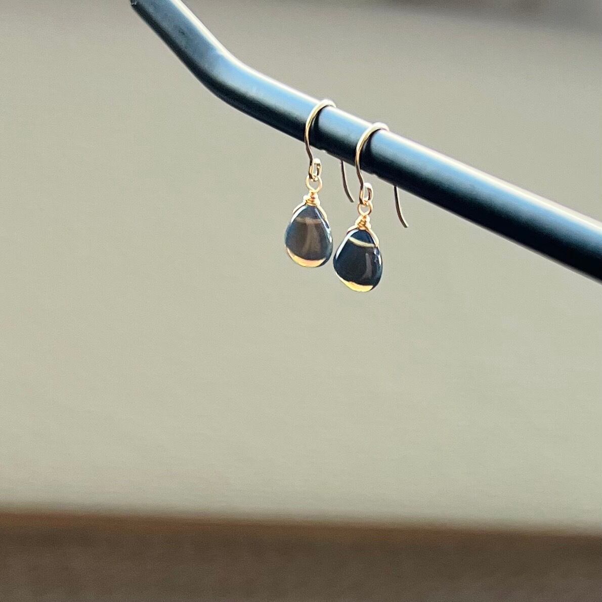 ミニサイズ 天然石ピアス ブラックオパール 14kgf pierced earrings