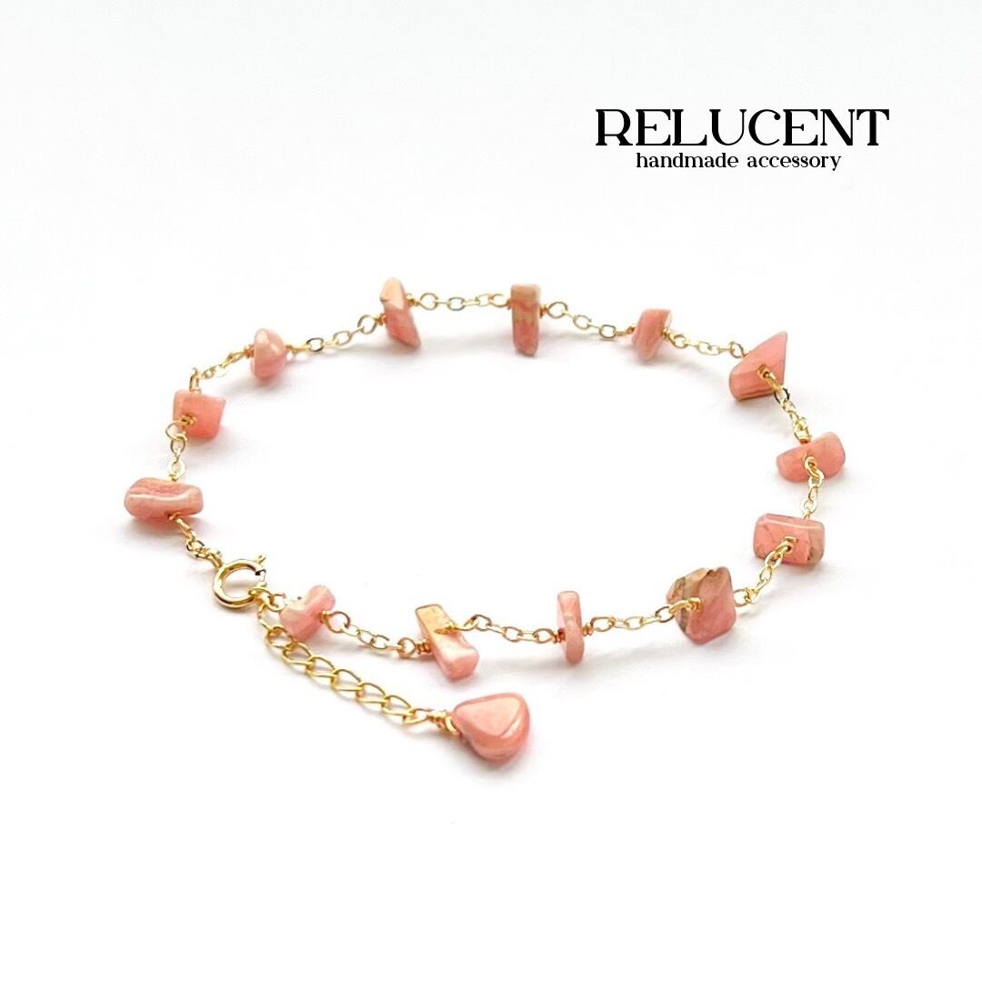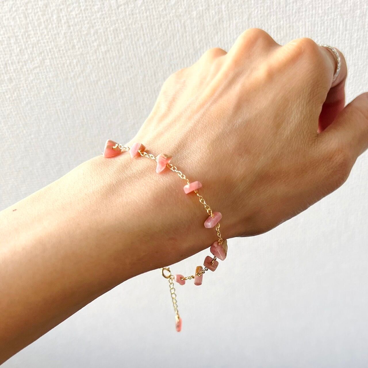天然石ブレスレット インカローズ さざれ石 14kgf bracelet