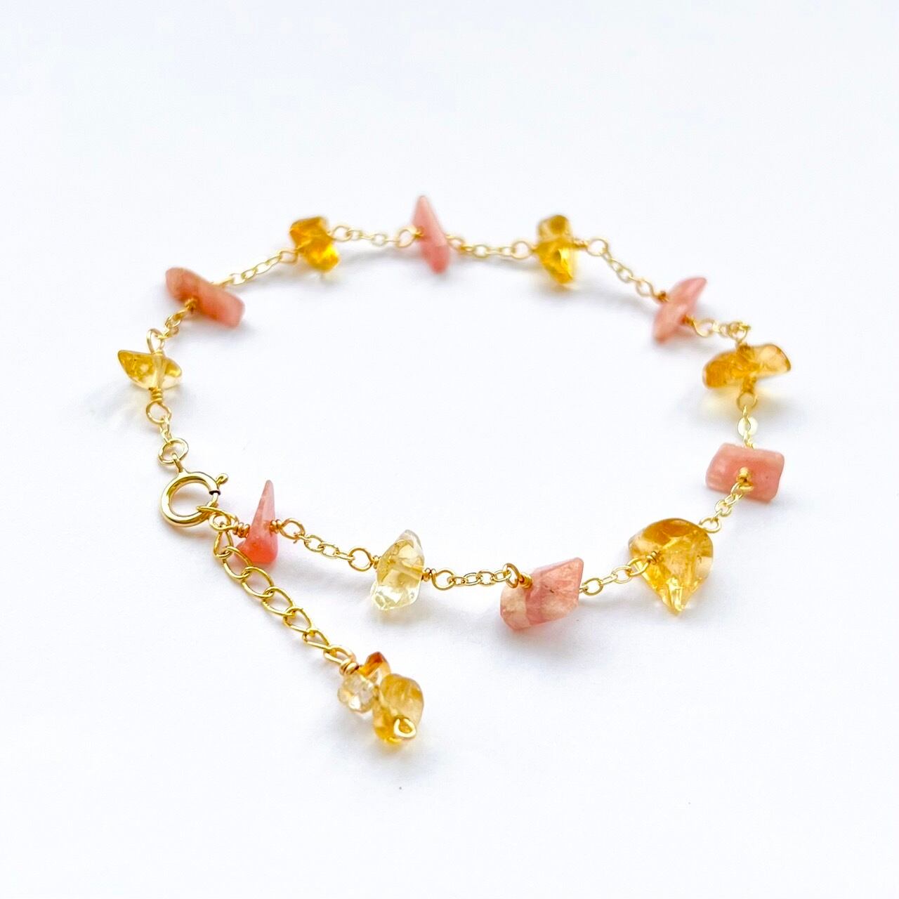 天然石ブレスレット インカローズ×シトリン さざれ石 14kgf bracelet