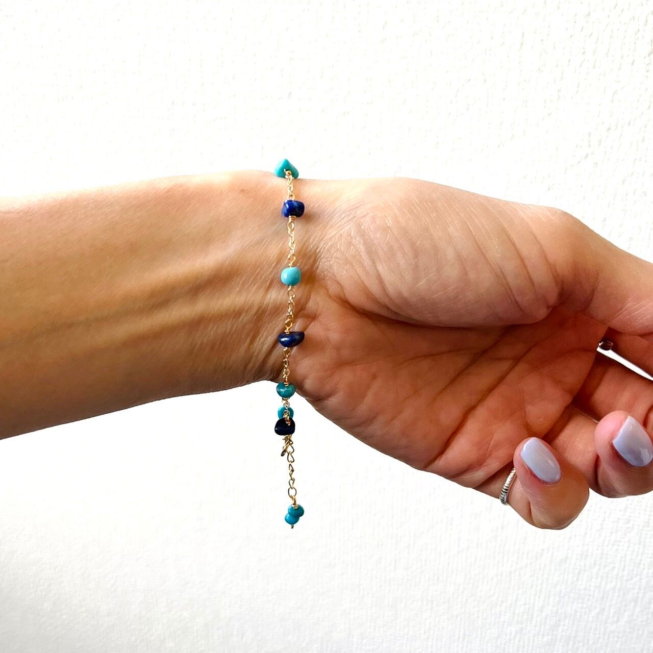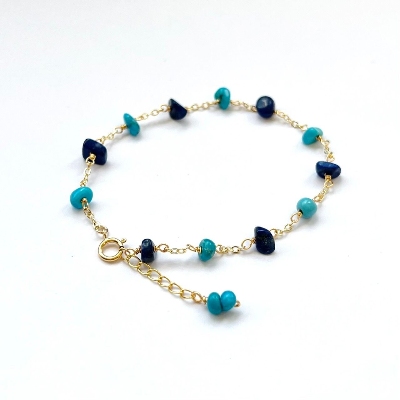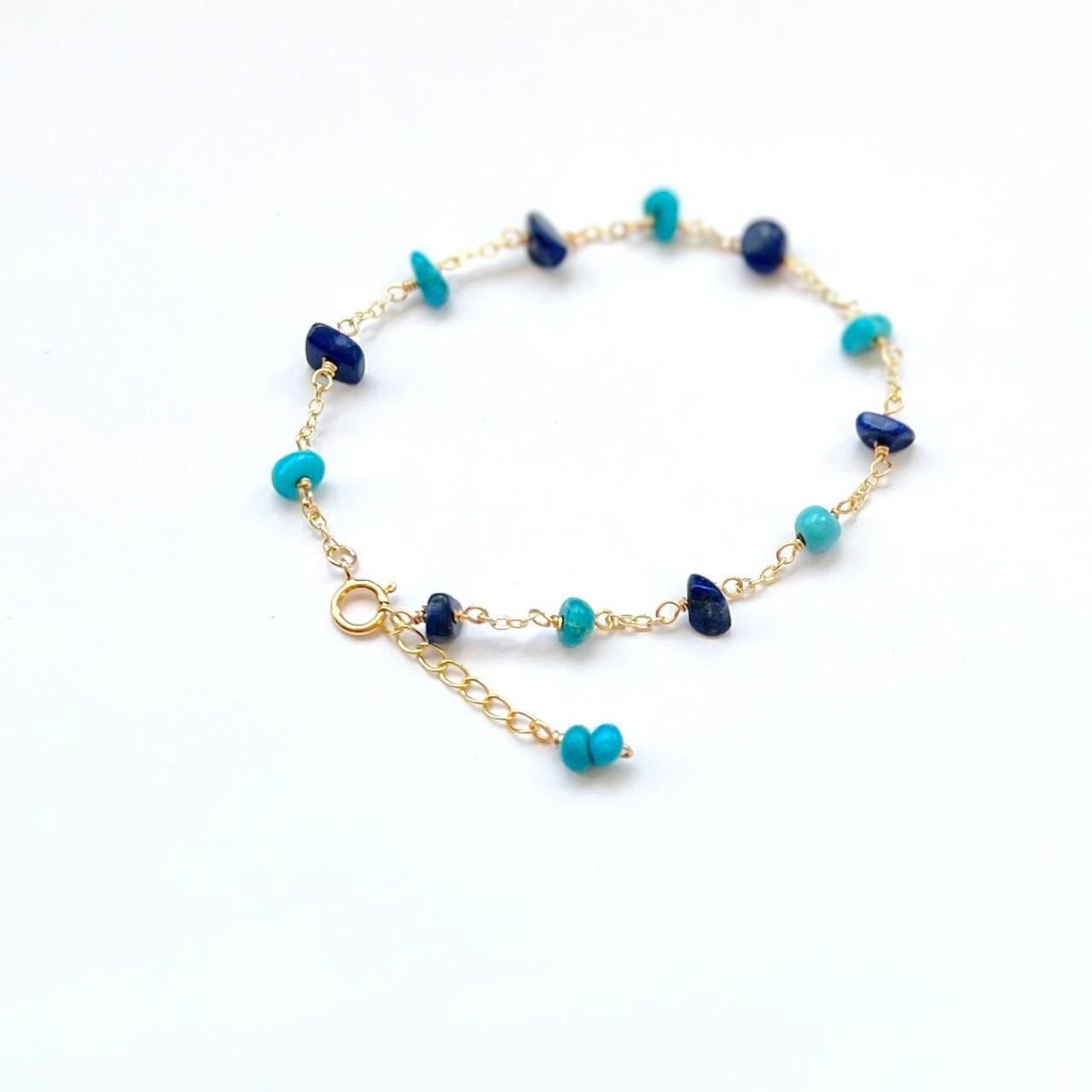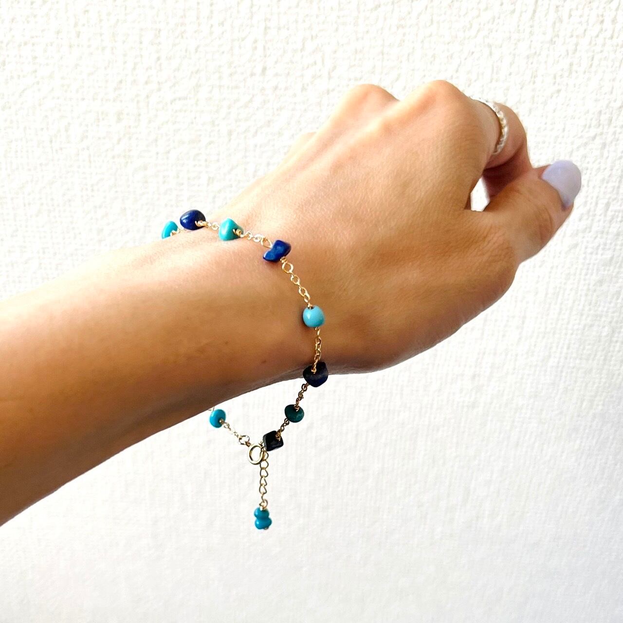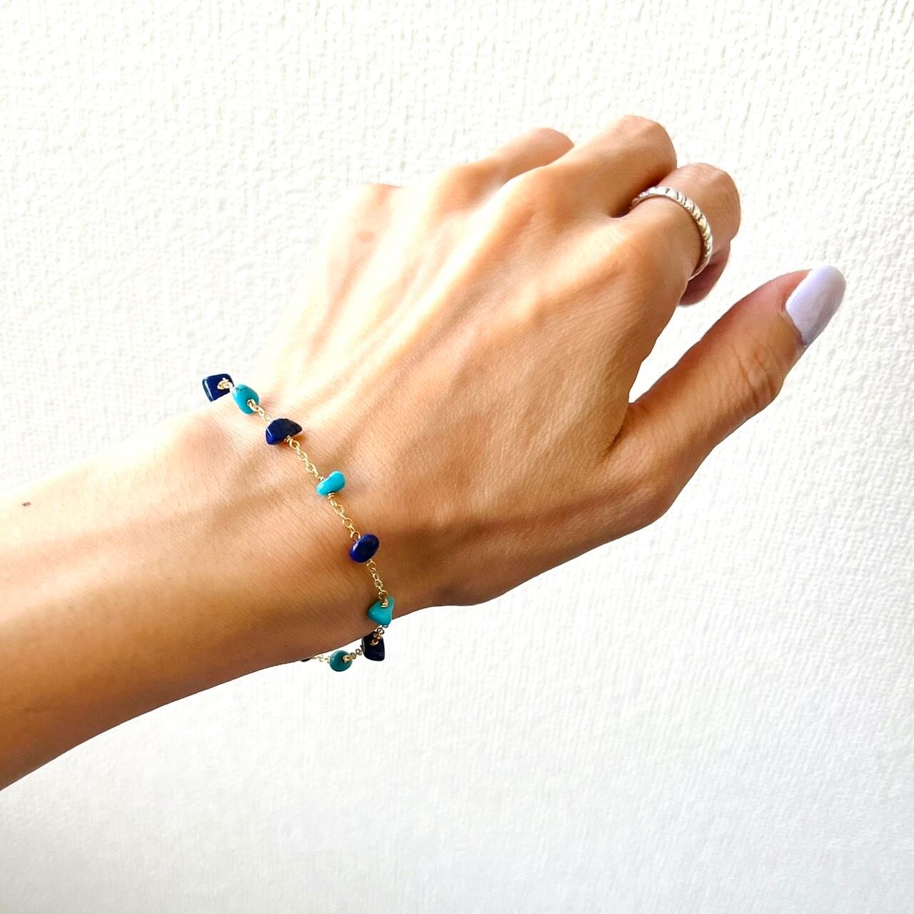 天然石ブレスレット ターコイズ×ラピスラズリ さざれ石 14kgf bracelet