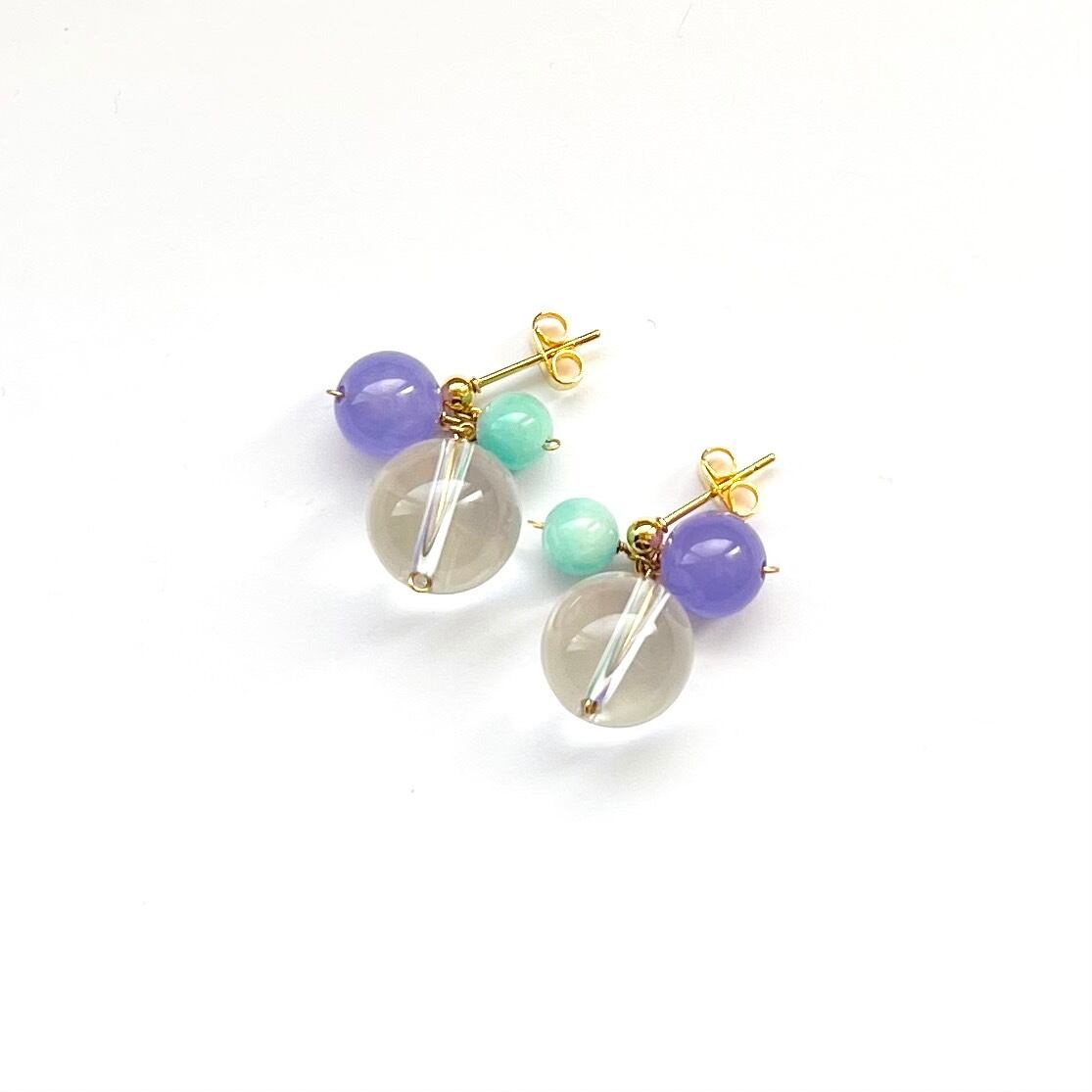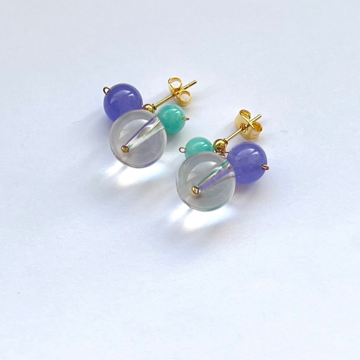 天然石ピアス クリスタル×アマゾナイト×ブルージェード サージカルステンレス ポストピアス