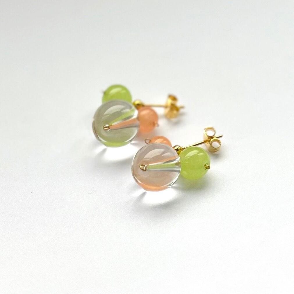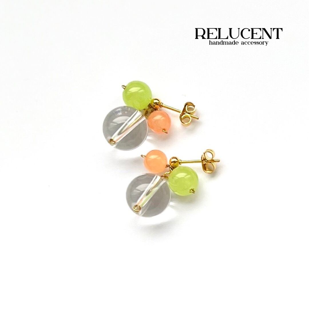 天然石ピアス クリスタル×イエロージェード×オレンジジェード サージカルステンレス ポストピアス
