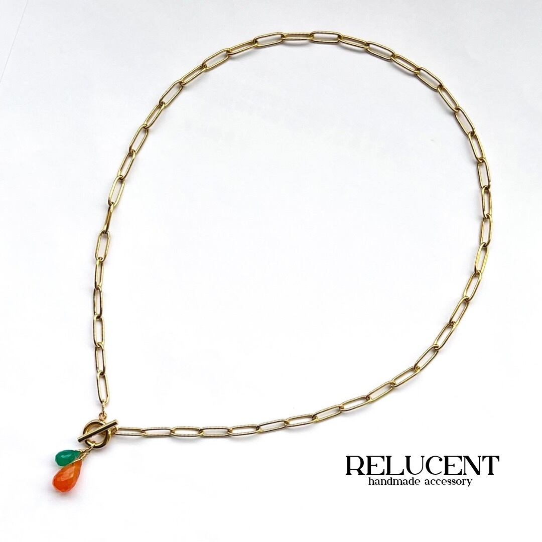 つけっぱなしOK サージカルステンレス マンテルネックレス カーネリアン×グリーンオニキス 天然石ネックレス
