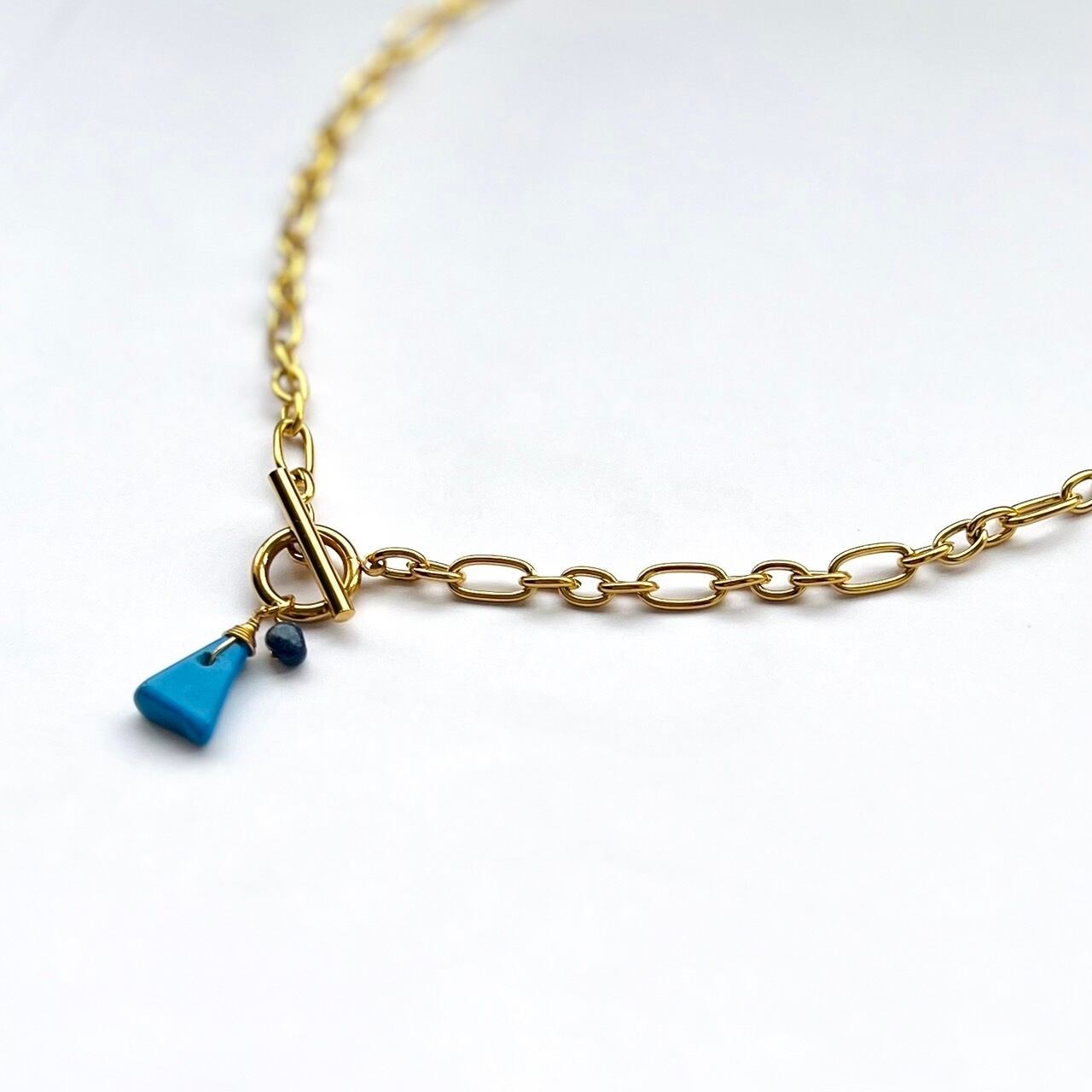 つけっぱなしOK サージカルステンレス マンテルネックレス ターコイズ×ラピスラズリ 天然石ネックレス