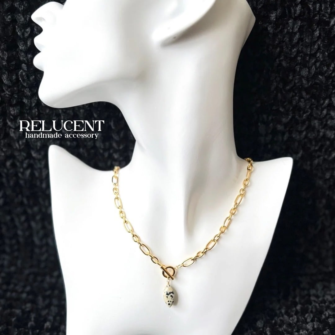 つけっぱなしOK サージカルステンレス マンテルネックレス ダルメシアンジャスパー 天然石ネックレス