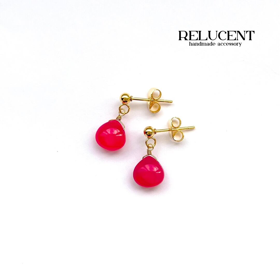 ミニサイズ ピアス 天然石 ピンクカルセドニー サージカルステンレス pierced earrings