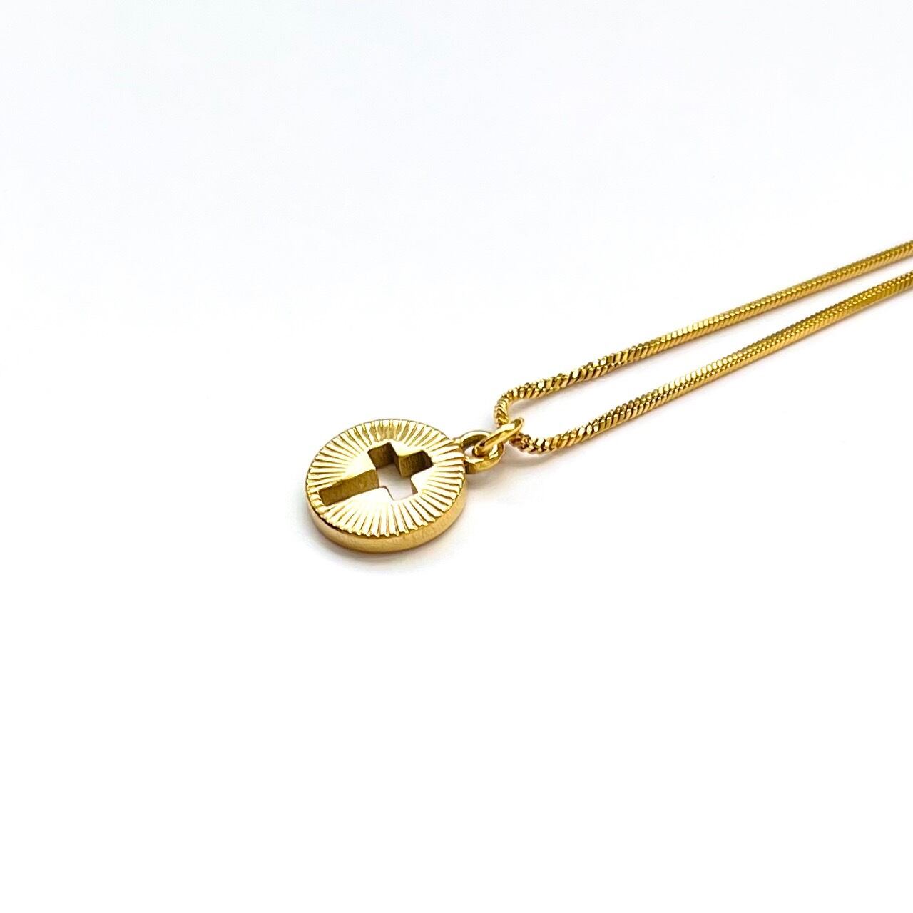 サージカルステンレス クロス コインチャーム ネックレス サファイア 天然石ネックレス