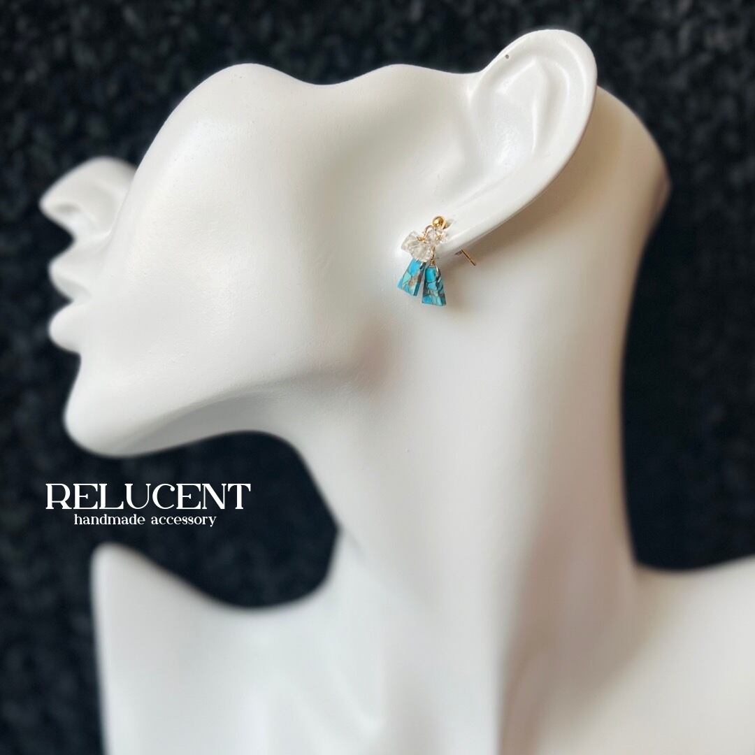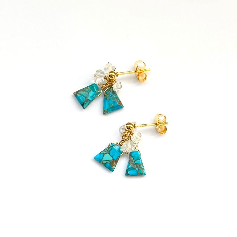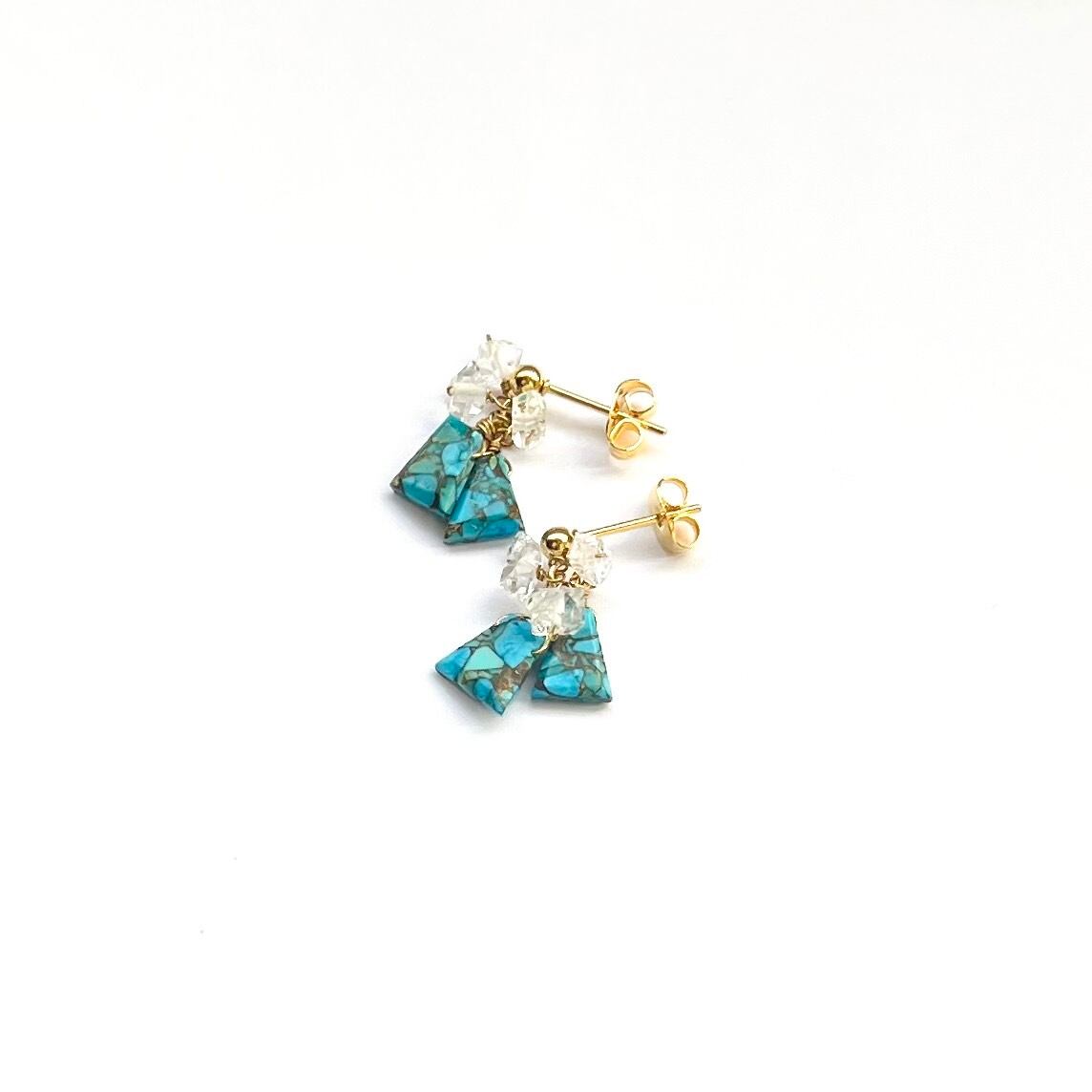 天然石ピアス コッパーターコイズ ハーキマーダイヤモンド サージカルステンレス pierced earrings